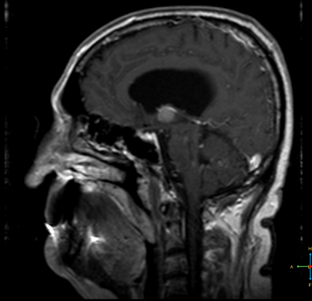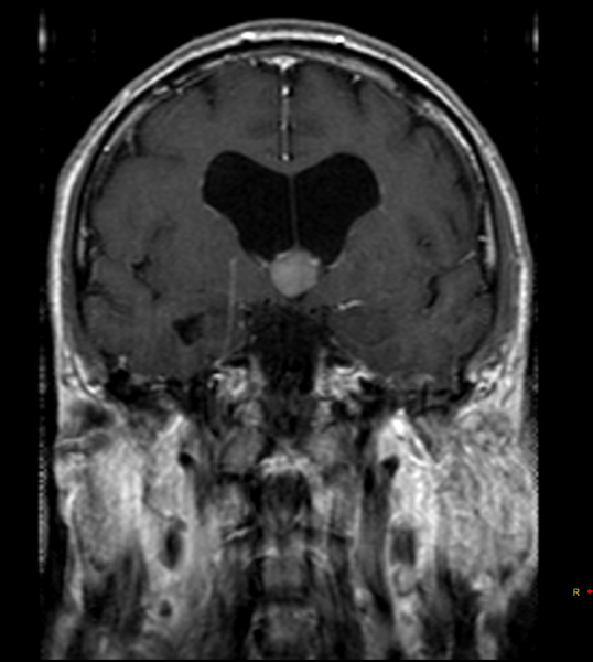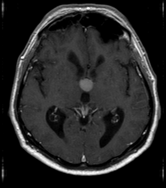 Ασθενής 63 ετών, προσέρχεται λόγω αναφερόμενων από το οικείο περιβάλλον διαταραχών βάδισης, πρόσφατης μνήμης και προσωπικότητας, συμτωματολογία αρχόμενη προ τριετίας.Υπεβλήθη σε μαγνητική τομογραφία εγκεφάλου η οποία ανέδειξε κυστική εξεργασία στο κατώτερο τμήμα της τρίτης κοιλίας (18x16x14mm), χαμηλού σήματος στις Τ2 ακολουθίες και υψηλού σήματος στις Τ1 (ως επί κολλοειδούς κύστης). Ο ασθενής αντιμετωπίστηκε αρχικά συντηρητικά, υπό παρακολούθηση με ετήσιο έλεγχο με μαγνητική τομογραφία. Από το περιβάλλον αναφέρεται προοδευτικά επιδείνούμενη συμτωματολογία κατά το τελευταίο εξάμηνο, για την οποία και αποφασίστηκε χειρουργική αντιμετώπιση.